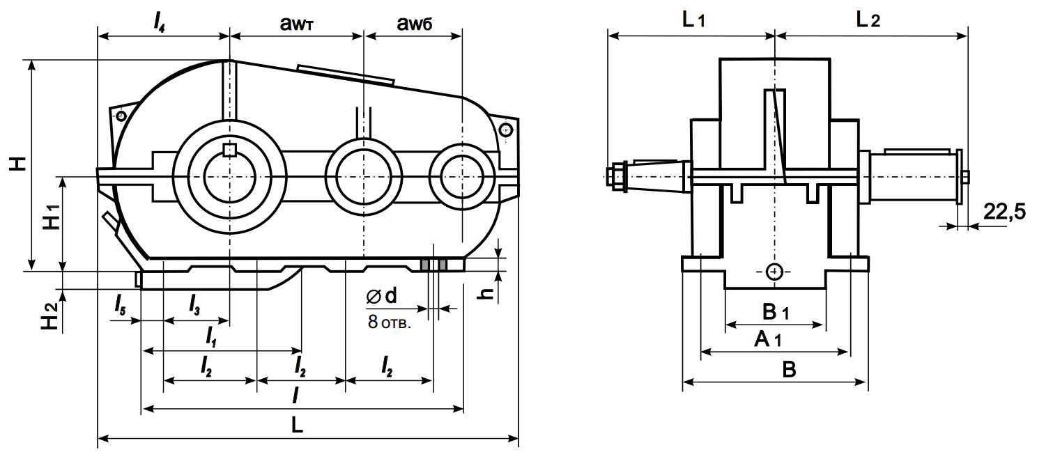 Редукторы цилиндрические горизонтальные РК-500, РК-600