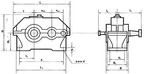 Габаритные и присоединительные размеры редукторов 1Ц3У