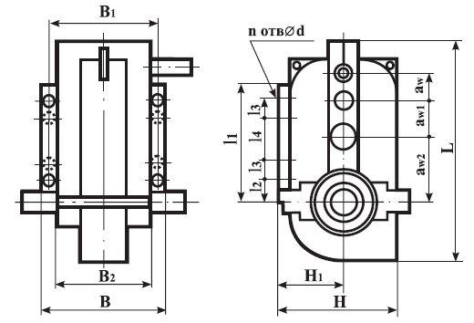 Тип L l1 l2 l3 l4 H H1 B B1 B2 aw aw1 aw2 n d